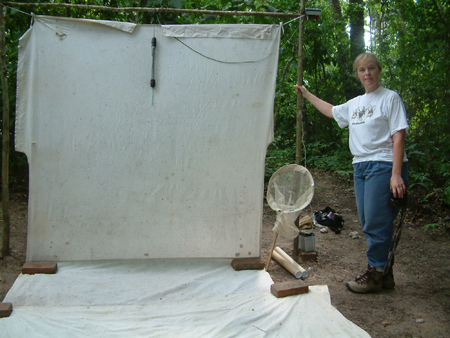 Mary Liz Jameson with light trap near Flora and Fauna Lodge. Photo BCR. |
