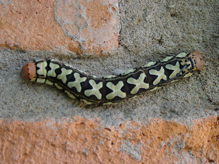 X marks the spot! Unknown larva at Flora and Fauna lodge. Photo MLJ. |