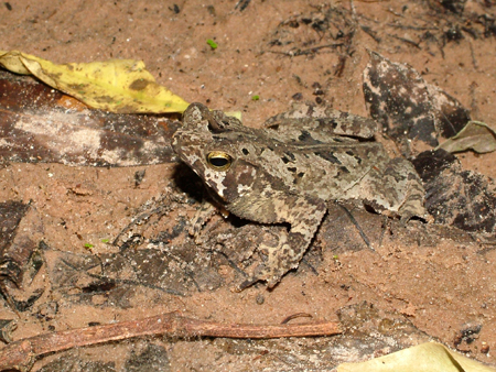 Leaf mimicking frog at Flora and Fauna Lodge. Photo MLJ. |