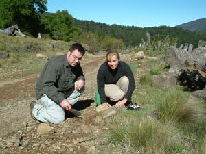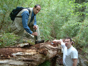 Federico and Matt seeking specimens of Pycnosiphorus (Lucanidae)