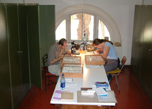 Mary Liz studying specimens in the collections of the Museo Nacional de Historia