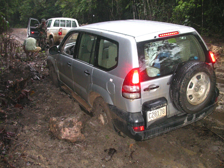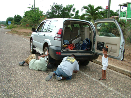 Successful extraction of vehicle from pitfall trap: Jesus, Mary Liz, Ron.