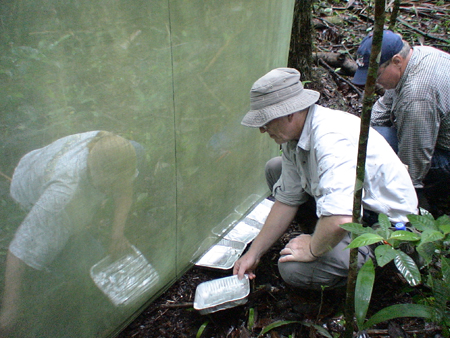 Setting up flight intercept trap at Las Cuevas, Photo J. Orozco. |
