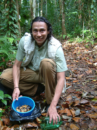 Jesus preparing fruit traps, Cockscomb Jaguar Reserve.