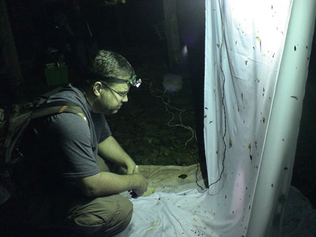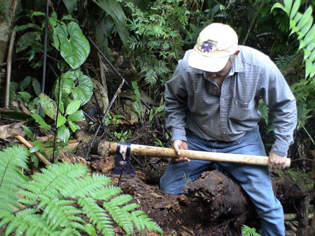 Enio Cano enquiring after passalids at Biotopo del Quetzal,