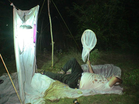Ron Cave servicing dung traps. Biotopo del Quetzal, July 2009. |