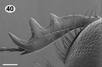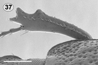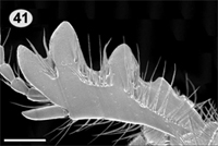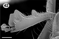 Fig. 40. Orodaliscoides reflexus protibia; Fig. 41. Orodaliscoides