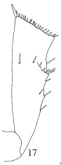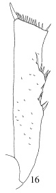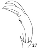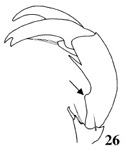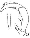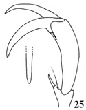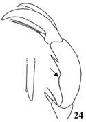 weak, apical nib in frontal view [Fig. 25, inset]; claw of female simple