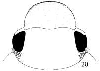 18) B. angustus (male); 19) B. patagoniensis (male). Head (dorsal view) showing: