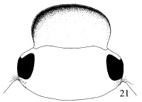 6. Region posterior to eye with scale-like setae (Figs. 11a, 20). Clypeus of