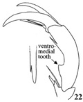 view [Figs. 22–24]; claw of female toothed in dorsal view [Fig. 26]).