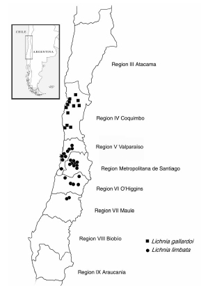 Region V (Valparaíso) to Region VII (Maule) (Fig. 10) ....................................................................... Lichnia limbata Erichson