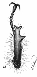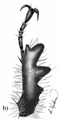 length (Fig. 3b). In the genus Arctodium, the male tibial apex is modified into a long,