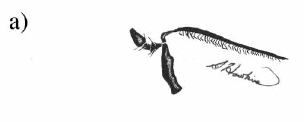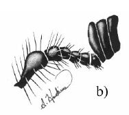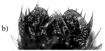 FIGURES 7a–b. Lateral view of beetles showing length of galea.
