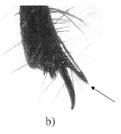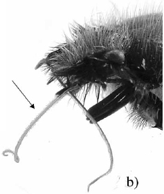 FIGURES 3a–b. Dorsal view of foreleg of Lichnia limbata showing sexual dimorphism in male