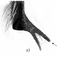 pointed spine (Figs. 8a–c), whereas the female tibial apex forms only a short, blunt spine