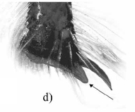 FIGURES 8a–d. Metatibial apex showing apical spine (arrow) and adjacent spur.