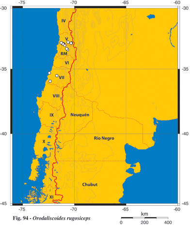 Orodaliscoides rugosiceps  distributional records from southern South America.  |