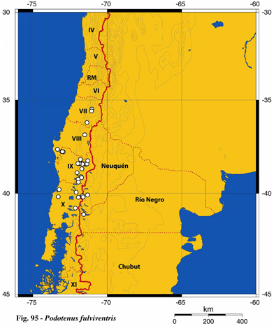Cordillera Nahuelbuta), Cerros de Nahuelbuta, Cordillera de Las Raíces (Lonquimay), Cunco, Lago Caburga (21 km NE Pucón), Malalcahuello (12 km E), Manzanar, Manzanar (20 km E), Parque Nacional Nahuelbuta