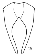 apex with 14-16 spinules. Metatibial apex with 22-26 spinules. Parameres: Figure 15.