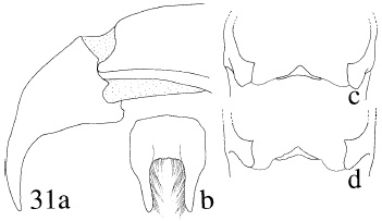 divergent (more so in females). Male genitalia: Figure 31a-d. |