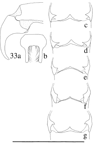 Figure  33a-g. Form of the male genitalia in Brachysternus prasinus  (lateral view of